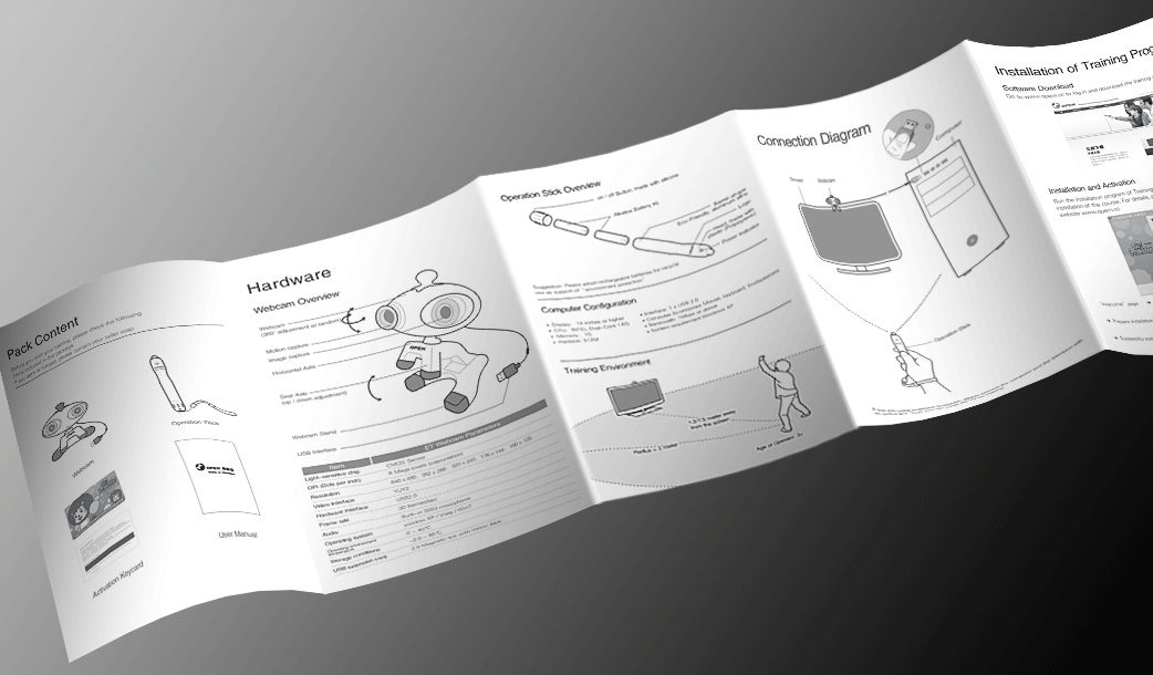 安裝說明書主要介紹如何將一堆分散的產品零件安裝成一個可以使用的完整的產品。我們知道,為了運輸的方便,許多產品都是拆開分裝的。這樣用戶在購買到產品之后,需要將散裝部件合理地安裝在一起。這樣在產品的說明書中就需要有一個具體翔實的安裝說明書。